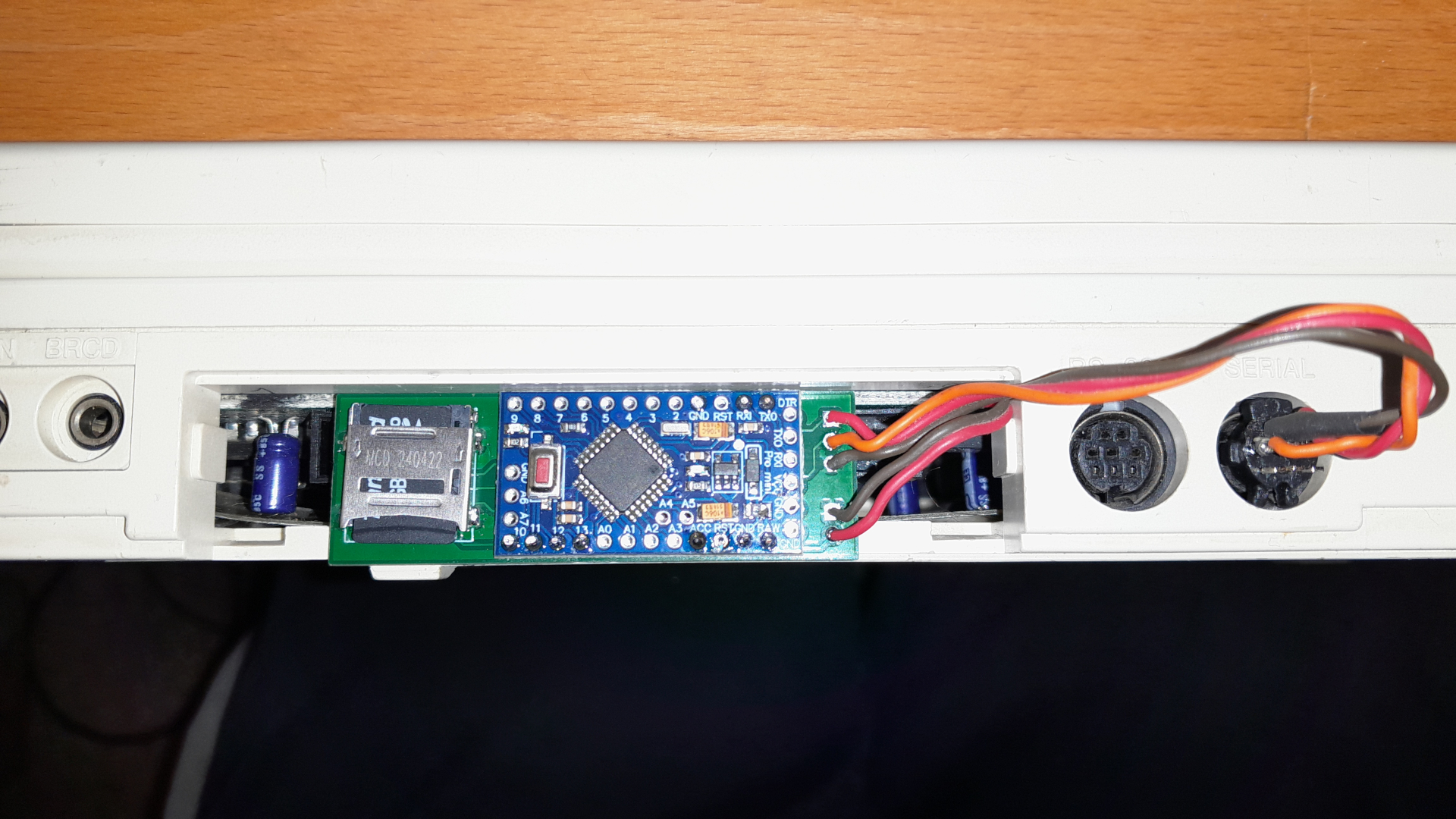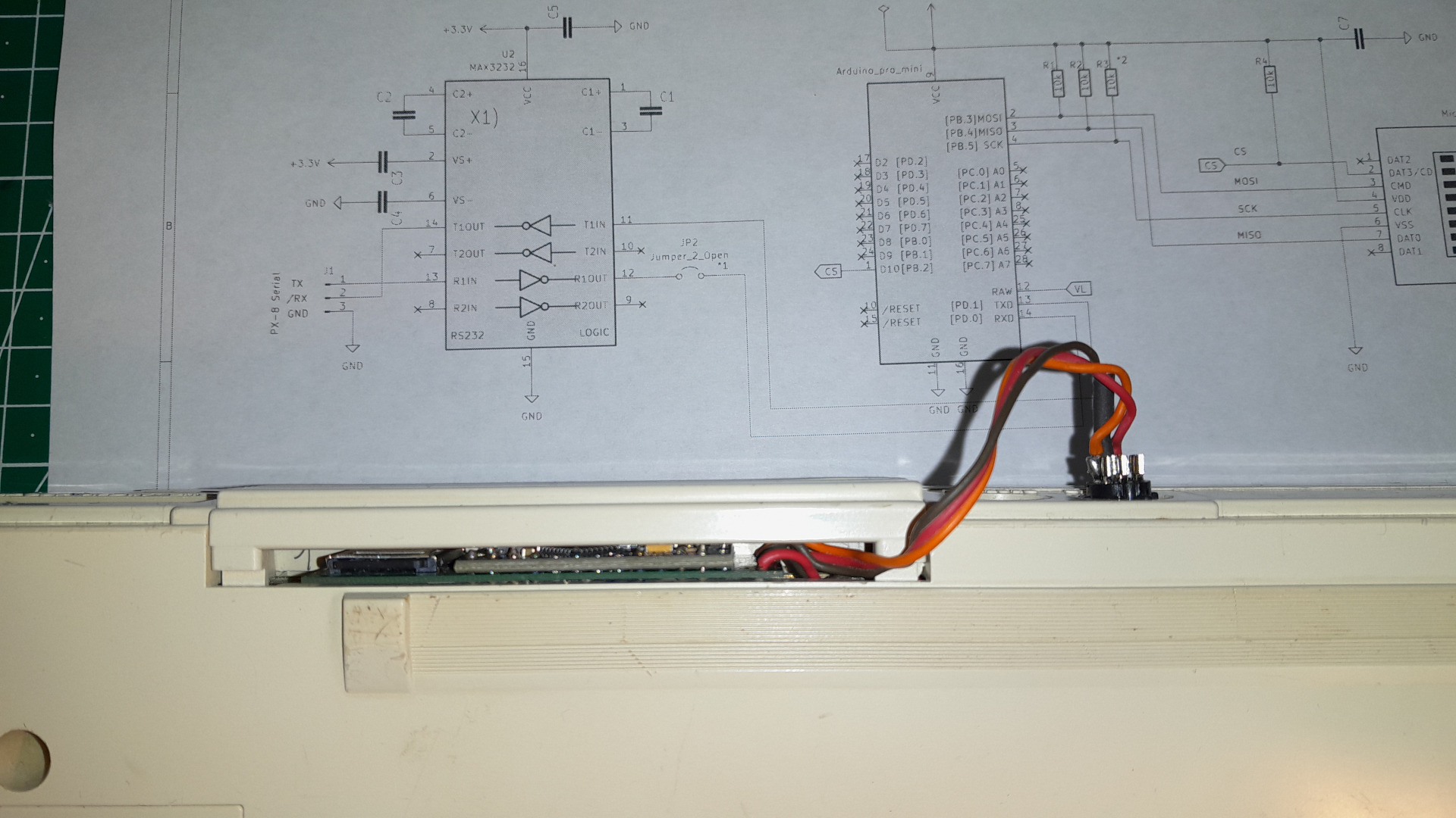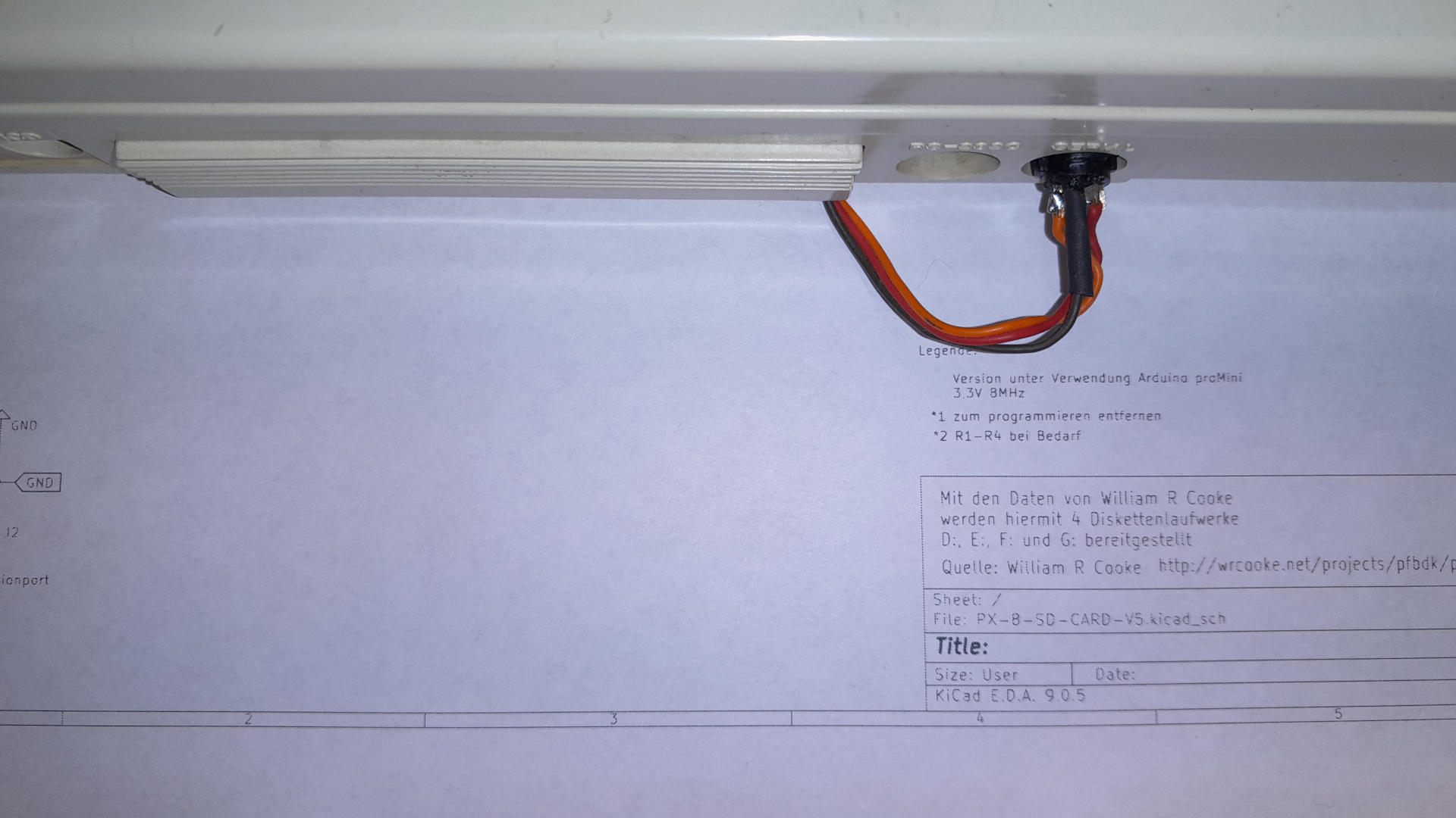 SD-Karte mit Turbopascal etwas gequält und Dateien von einem Laufwek zum nächsten geschoben, sind ja vier mit jeweils 320kByte vohanden – alles schön. Wie man von oben/unten erkennen kann passt das Inteface fast vollständig unter die Haube. Es fehlen noch ca 5mm, die können mit einem 3D-Duck sichelich überbrückt werden.