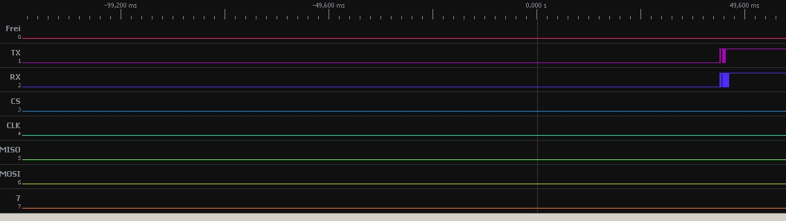 Die Sendeanforderung vom PX-8 wird zum Arduino gesendet, hieraufhin sollte derNano das Protokoll analysieren und die Karte entsprechend ansteuern. Hierzu muss das CS-Signal auf low gehen und mit CLK, MOSI u. MISIO die Daten holen und hier scheitert der Datenaustausch, die Signale bleiben in Ruhestellung. Entweder kann er die Datenanfrage vom PX8 nicht richtig interprtieren oder die SPI Schnittstelle hat einen Fehler. Am Nano kann es nicht liegen da er in der alten Schaltung einwandfrei funktioniert. Mit dem Oszi ist das schlecht darzustellen, vieleicht bringt der Logik-Analyser bessere Erkenntnisse…