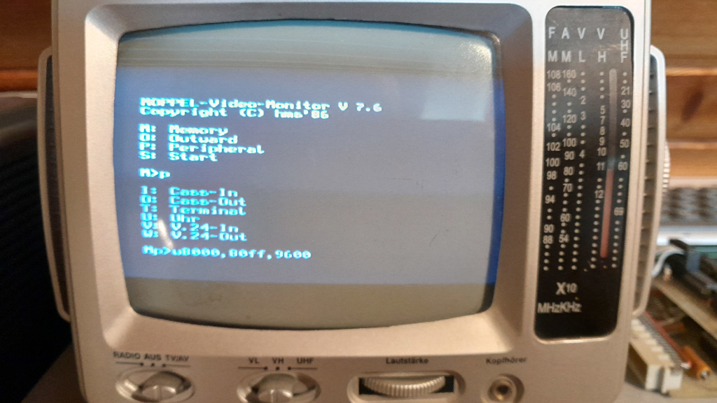 Da die anderen Systeme alle mit deutlich verbesserte RS232-Treiber ausgestattet sind habe ich hier den Versuchsträger mit der Version x.6 bestückt und unter Monitorkontrolle angetestet. Die Datenrate ist im Monitor fix auf 4800Bd gestellt, in der Eingabe Aufforderung gewählte Bd-Rate wird nicht berücksichtigt.