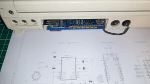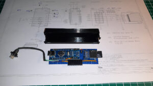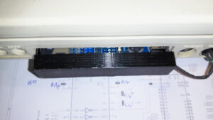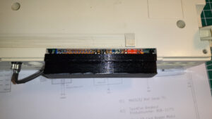 wie man unschwer erkennen kann ist die Platine noch etwas zu breit, oder am Gehäuse fehlen rundum noch ein paar Millimeter. Zudem gibt es noch ein Problem – wie fixiere ich das Gehäuse an der Platine bzw. an der Rückseite. Die vorgesehenen „Krallen“ wie beim Original brechen leider sehr leicht ab. Hier wollte Dirk in der 2.Version ein anderes Material nutzen…