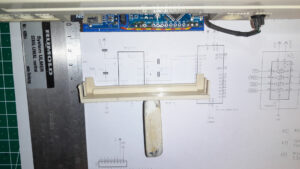 Den Kartenleser gegen eine kleinere Version getauscht und die Klinke (Kopfhörer) und die beiden Seriellen als mechanische Stütze genutzt. So bliebe noch Platz für einen D-Sub damit die RS232 eine ordentliche Steckverbindung bekommt. Aber es geht noch kleiner…
