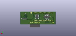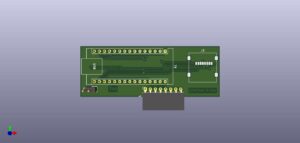 Um die Platine noch etwas kompakter zu bekommen habe ich eine neue Trägerplatine entworfen, hier sind die Module entfallen und die beiden Spannungswandler kommen von unten mit dem wenigen Kondensatoren und Widerständen auf direkt auf die Unterseite und der Micro-SD-Halter auf die Oberseite wobei die Karte nach hinten zeigt. So kann sie dann leicht ausgewechselt werden.