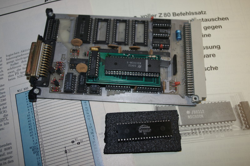 Wer unter CP/M arbeiten möchte wünscht sich volle Z80 Unterstützung. Mit einem kleinen Modul (Signal und Sockelanpassung) und dem NSC800N kein Problem. In der Elektronk 7 von 1984 wurde die Umrüstung eingehend beschrieben, ich habe es seinerzeit beim KDM-Ingenieurbüro erworben. Damit funktioniert z.B. Turbo-Pascal einwandfrei.