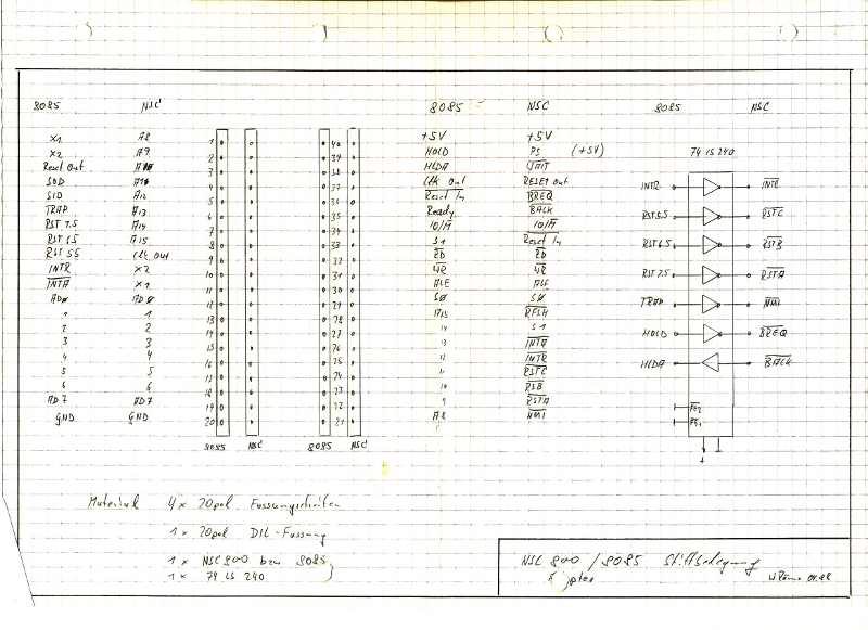 Die Signalleitungen für das Video- und Kasetteninterface bleiben natürlich ohne Terminierung. Die vorgesehene Resetschaltung habe ich stillgelegt, da sie im Moppel so nicht funktioniert.